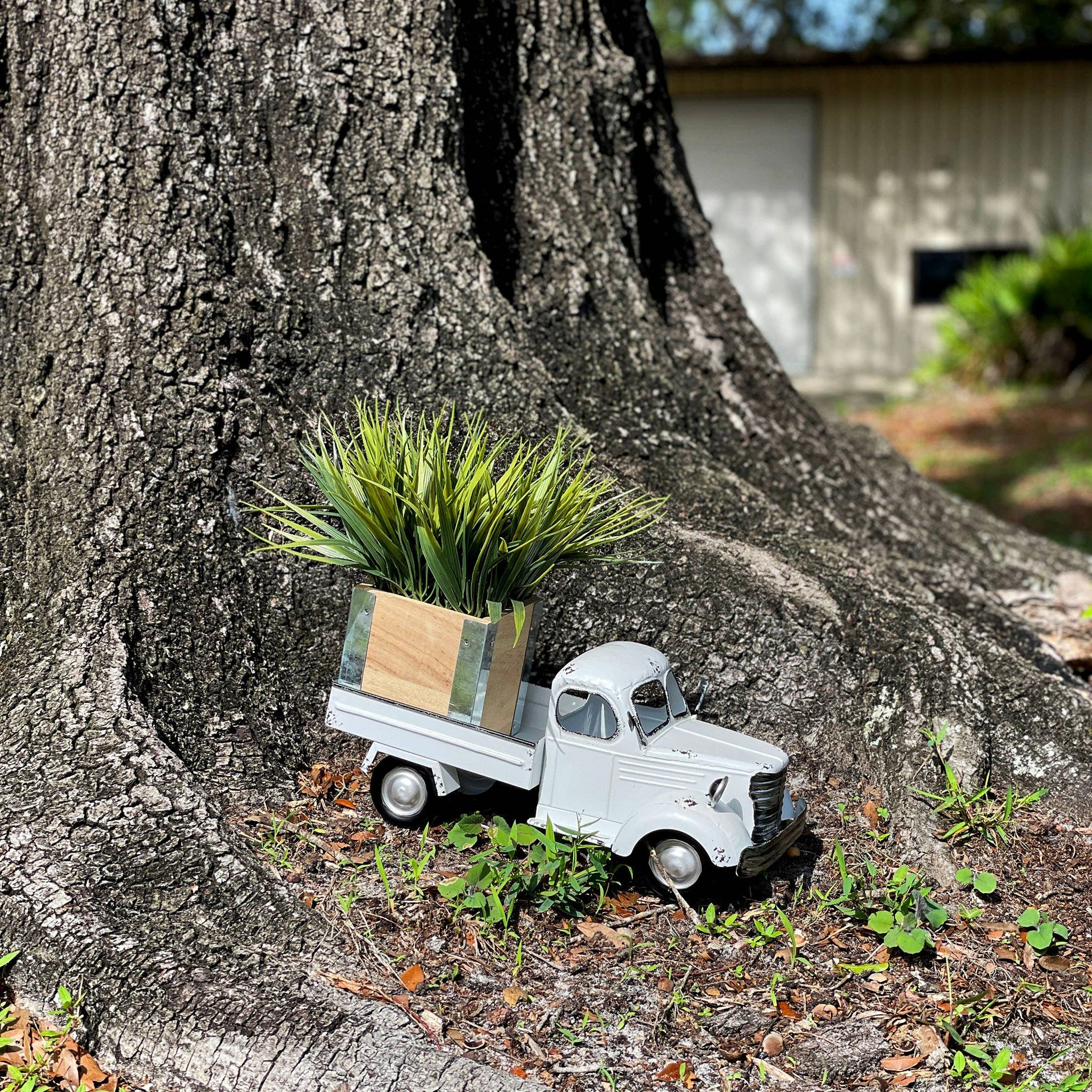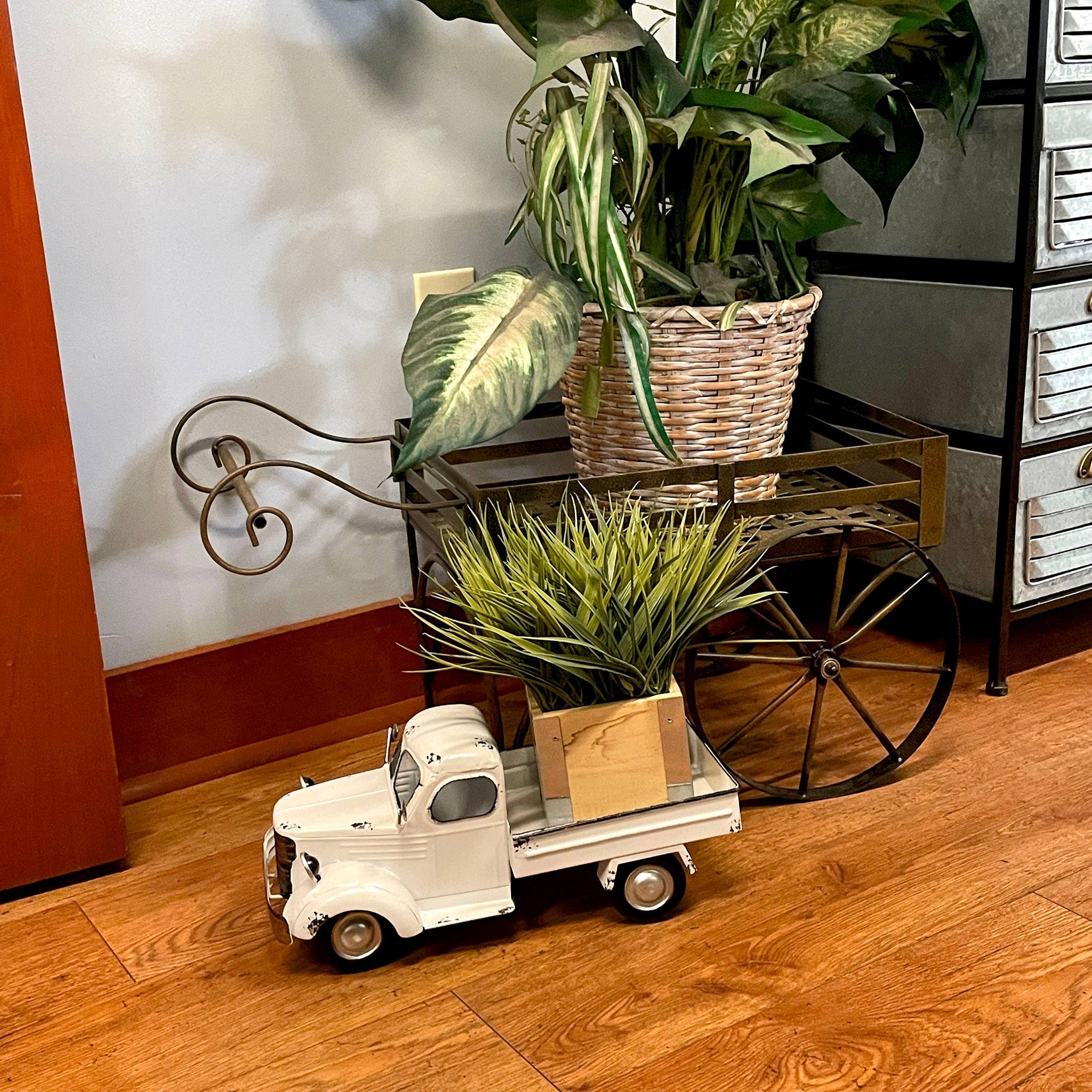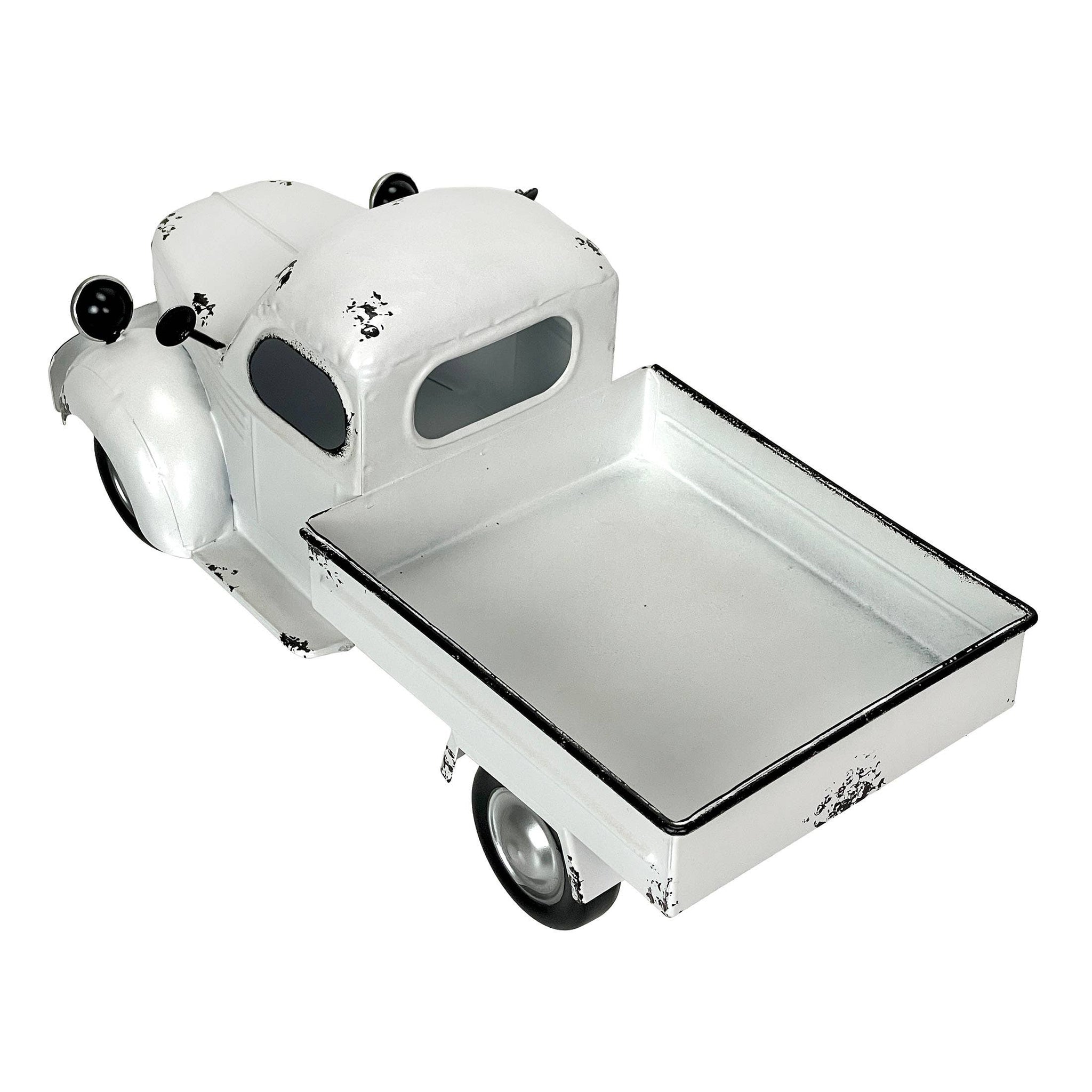 This 14 inch long, 6.5 inch wide, 6 inch high metal antique truck planter brings artful inspiration to your indoor or outdoor decor.