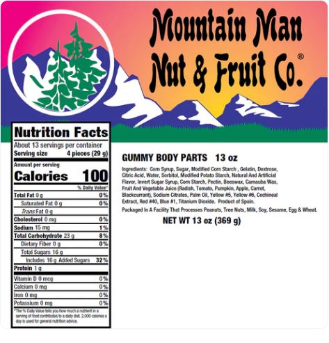 Gummy Body Parts are gluten-free*.