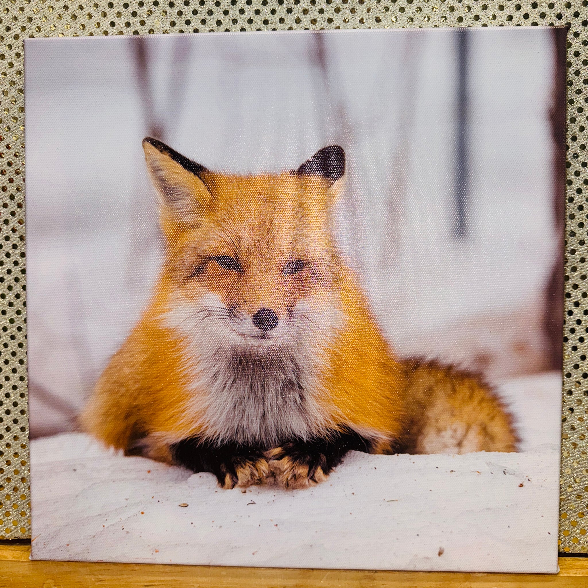 Fox print on Canvas. Your choice of fox on the run or fox laying down.