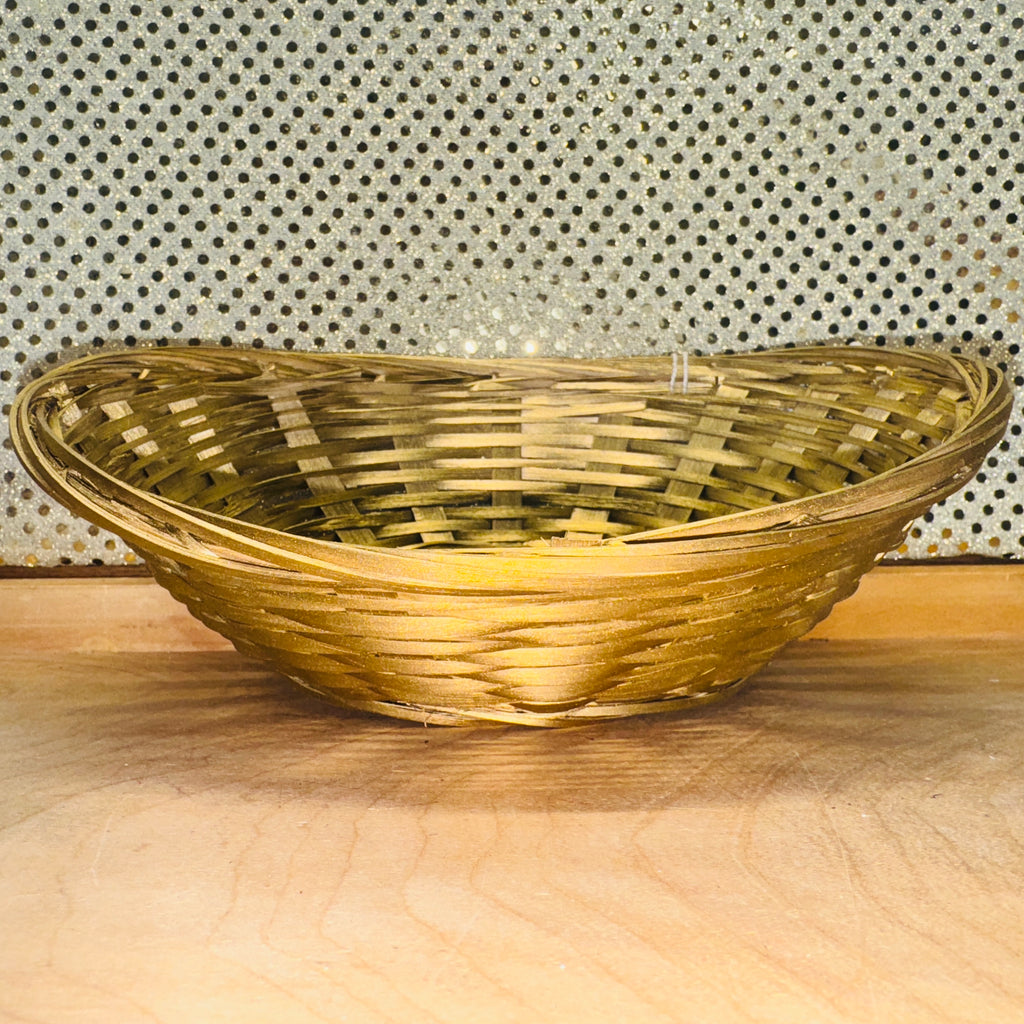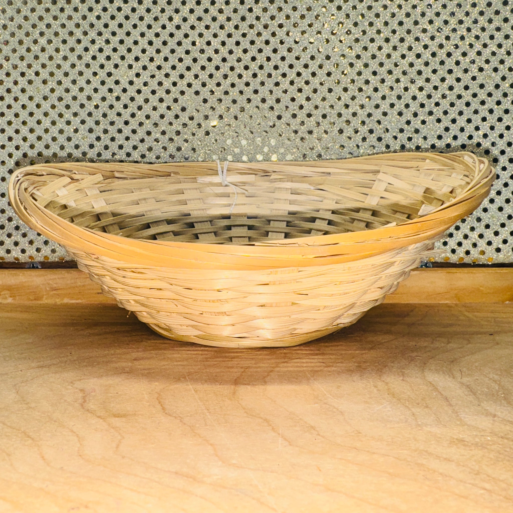 This basket is assembled using an oval bamboo basket with grass, cello and tie bow.