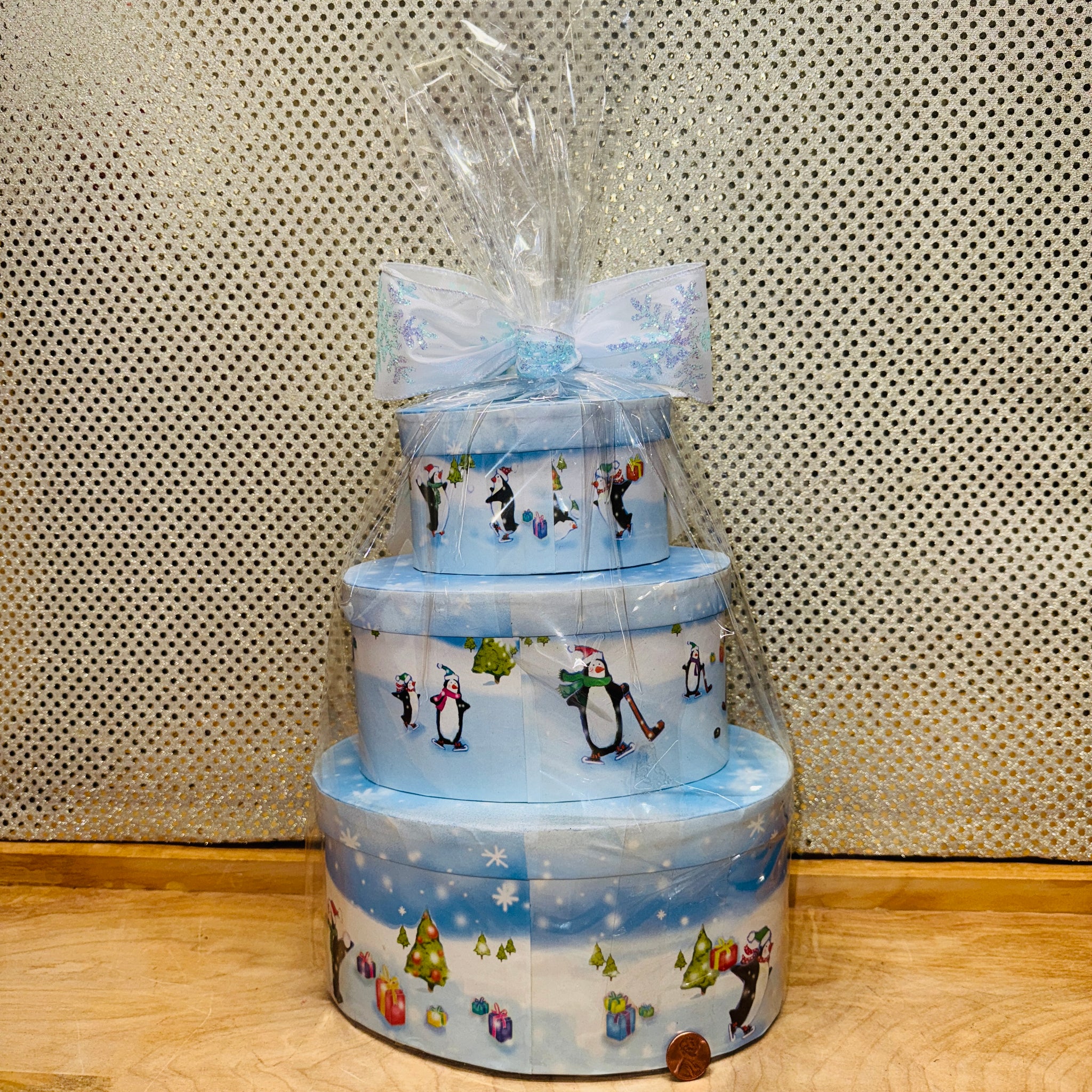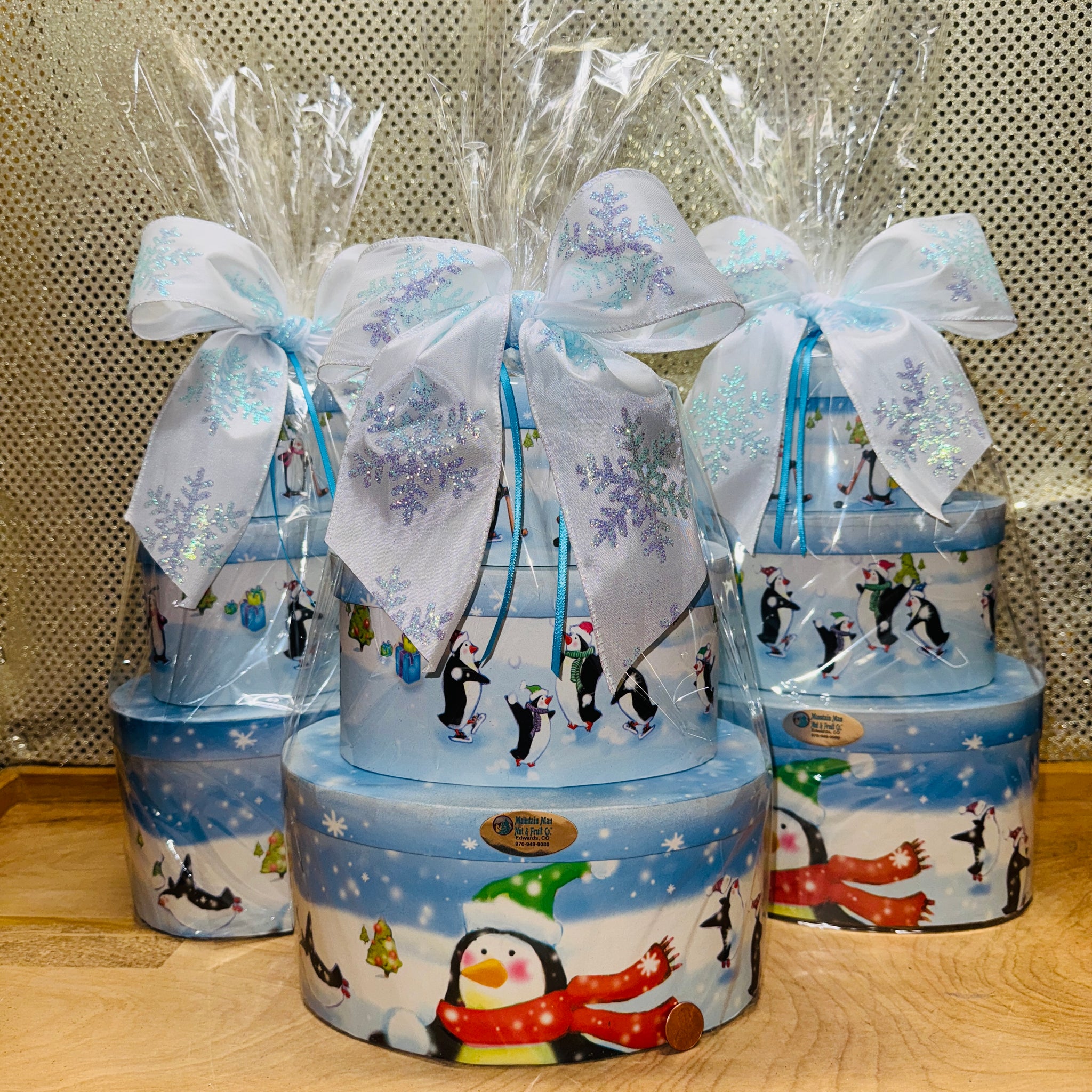 3 Box (Oval) Penguin Decorative Boxes filled with treats: