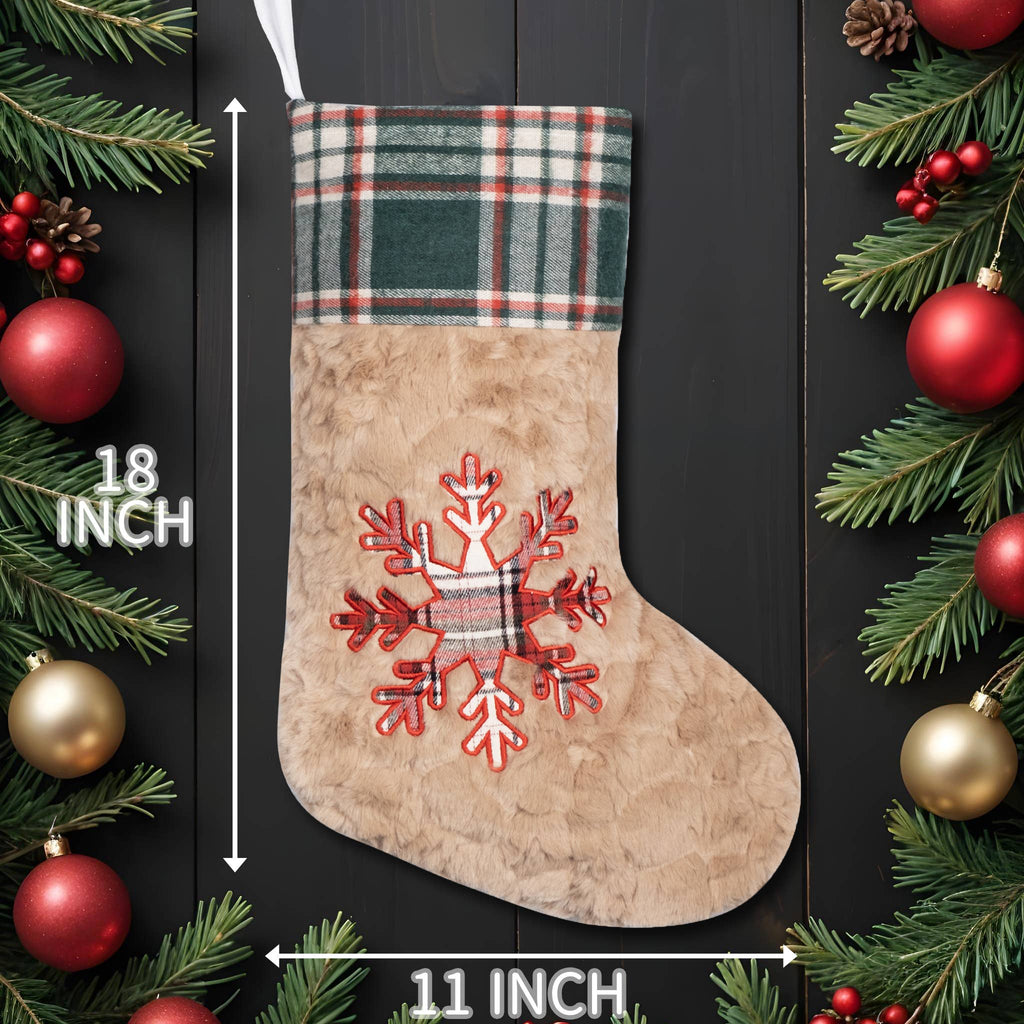 Perfect for hanging by the fireplace or displayed across your mantel, these stockings are sure to become a cherished part of your holiday traditions. They're not just for Santa's treats either – use them to hold everything from small gifts and trinkets to festive ornaments and pinecones. With their plush texture and eye-catching design, our red-green plaid stockings are the epitome of cozy Christmas charm, making them the perfect addition to your home this season and for many to come.